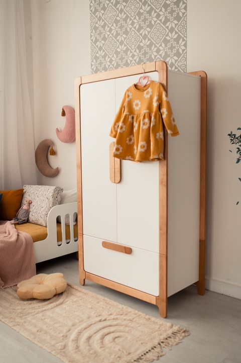 Дитяча поличка дизайнерська Монтессорі для книжок дерев'яна на колісчатках Котедж - Білий/натуральний