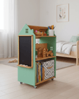 Дитячий стелаж дизайнерський Монтессорі для іграшок та книжок дерев'яний з грифельною дошкою на коліщатках Хмарочос - Зелений/лаковий