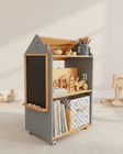 Дитячий стелаж дизайнерський Монтессорі для іграшок та книжок дерев'яний з грифельною дошкою на коліщатках Хмарочос - Темно-сірий/лаковий-copy-1