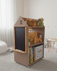 Дитячий стелаж дизайнерський Монтессорі для іграшок та книжок дерев'яний з грифельною дошкою на коліщатках Хмарочос - Мокко/лаковий